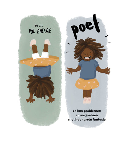 In rijmvorm wordt er verteld over haar nieuwsgierigheid, gevoeligheid en hoe ze zich soms enorm kan vervelen.